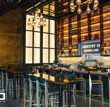 넓은 홀에 가라오케 시설, 높은 천정고의 BAR